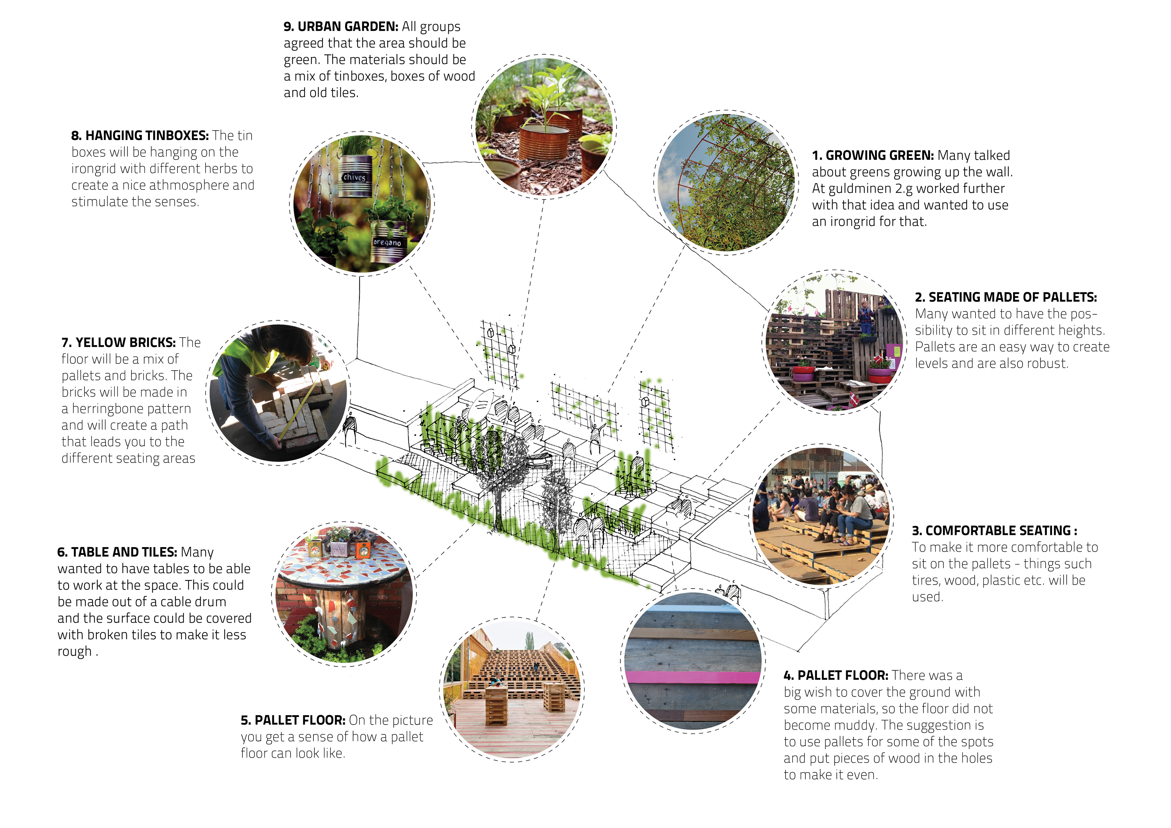 This project called for youth engagement and education to be shaped into a sustainable urban living-room in the heart of Copenhagen. Two cohorts at a local high-school proposed a dirty and neglected 68m2 school site to be used as their final design-build project. Tasked from my internship with commissioned architecture firm arki_lab, I co-developed a two week curriculum to introduce the students to the architectural design and development process. Lectures, workshops and studios resulted in the participatory design we took to production. Including everyone’s understanding of and desire for the space was pivotal for ensuring responsibility and ownership over the final product. Sustainability was high on the agenda and required by the student’s budget, so we sourced and used only recycled materials for this project. We managed construction logistics, building day planning and supervision of student construction.